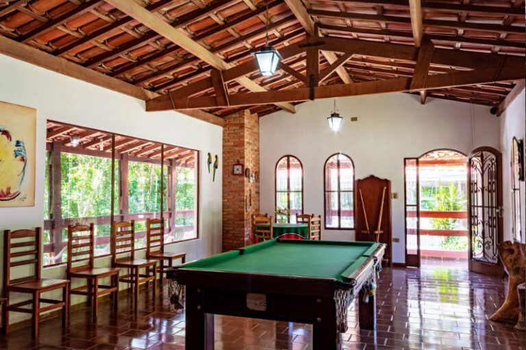 - Salão de jogos com sinuca, pebolim, cama elástica e jogos de tabuleiro