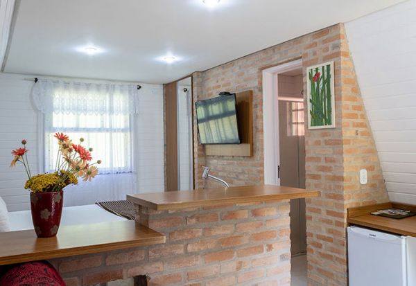 - Sala de TV com espaço de convivência e cozinha de apoio com micro-ondas