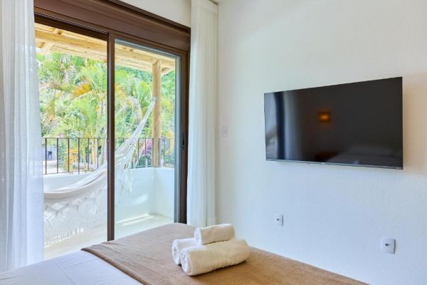 As casas oferecem estrutura completa para garantir uma estadia confortável e sem preocupações. Cada unidade conta com banheiro privativo, ambientes climatizados e varanda, proporcionando momentos de descanso e relaxamento com privacidade total.